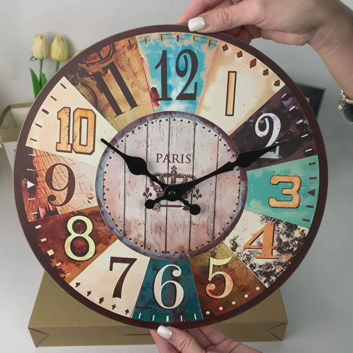 Découvrez cette magnifique horloge murale vintage rétro méditerranéenne, une pièce décorative qui allie à la perfection charme d’antan et élégance colorée. Son design unique transforme instantanément l’atmosphère de votre intérieur, apportant une touche d’authenticité et de style.